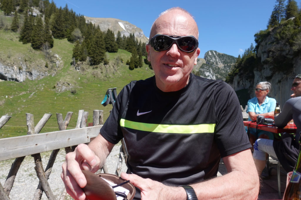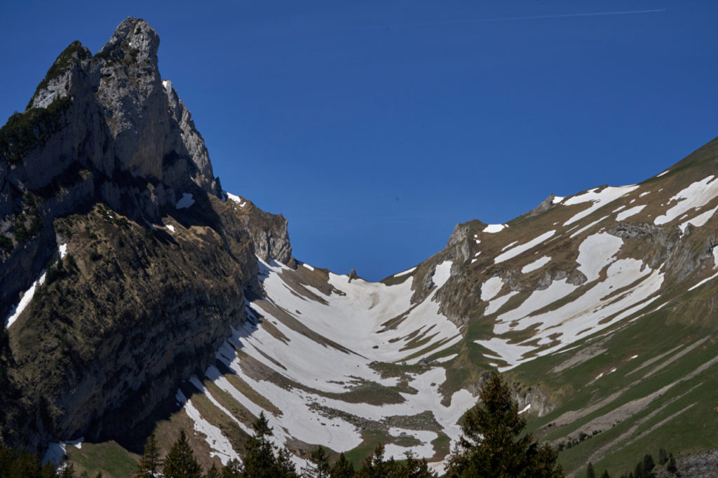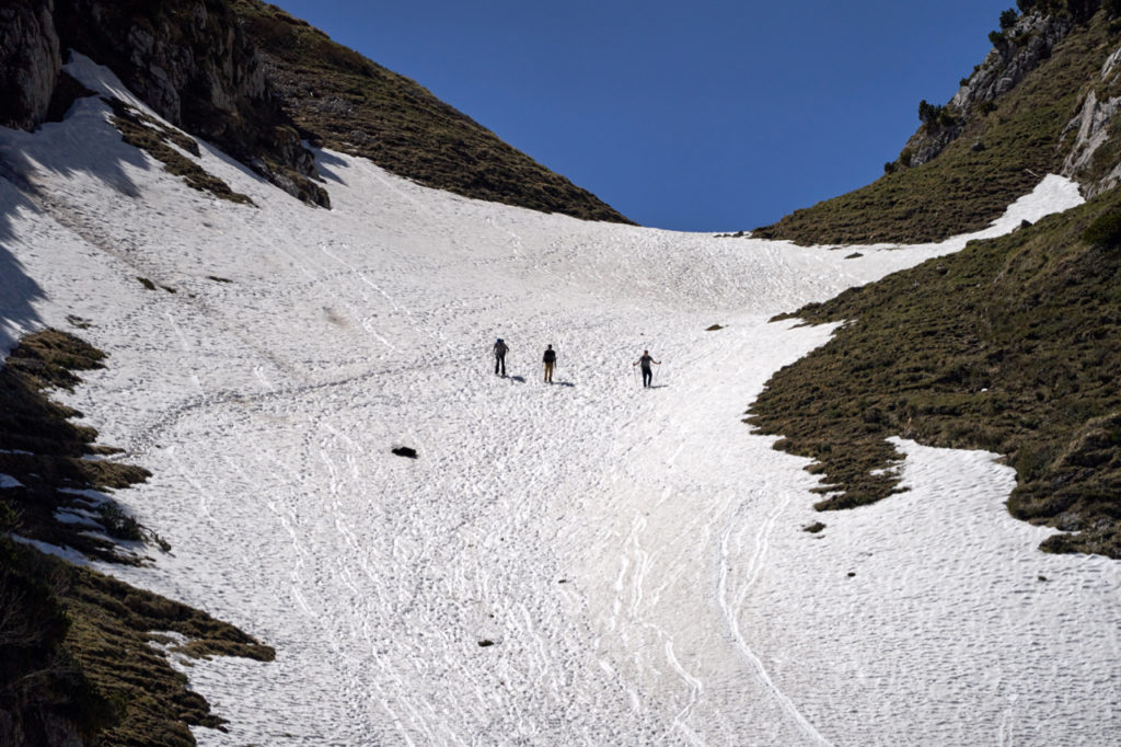 Während wir entspannt unsere Getränke zu uns nahmen, konnten wir auf der anderen Seite beobachten, wie die Wanderer vom Stauberen laufend und rutschend das Schneefeld herunterkamen. Hatten wir letztes Jahr an anderer Stelle im Alpstein erlebt, ist nicht immer so lustig.