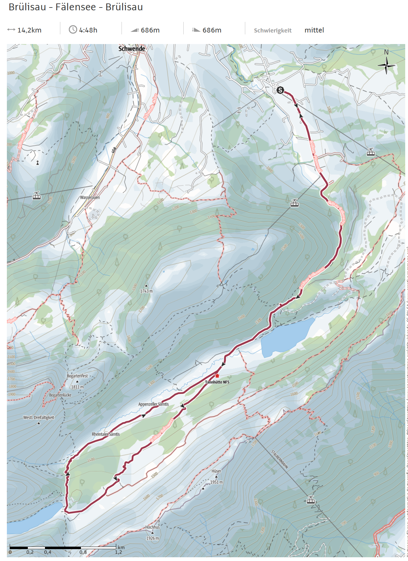 Jetzt ging es wieder den gleichen Weg wie am Morgen zurück, was hiess, den steilen Weg von Brülisau nach Plattenbödeli nun genau so steil runter 😩 Oberschenkel und Knie lassen grüssen.