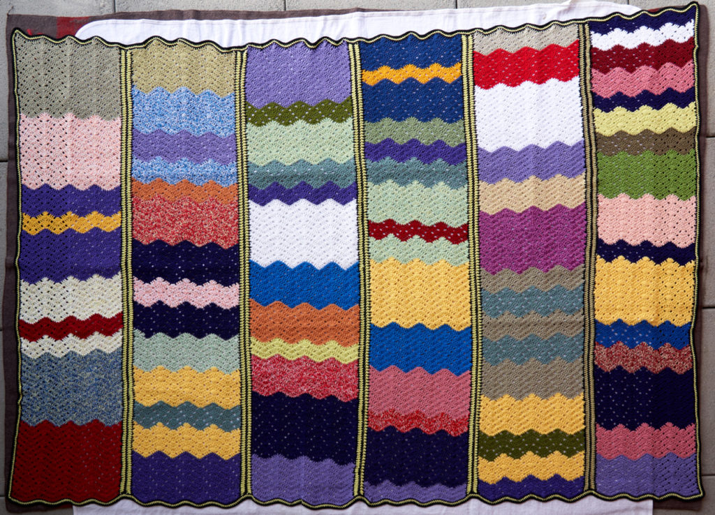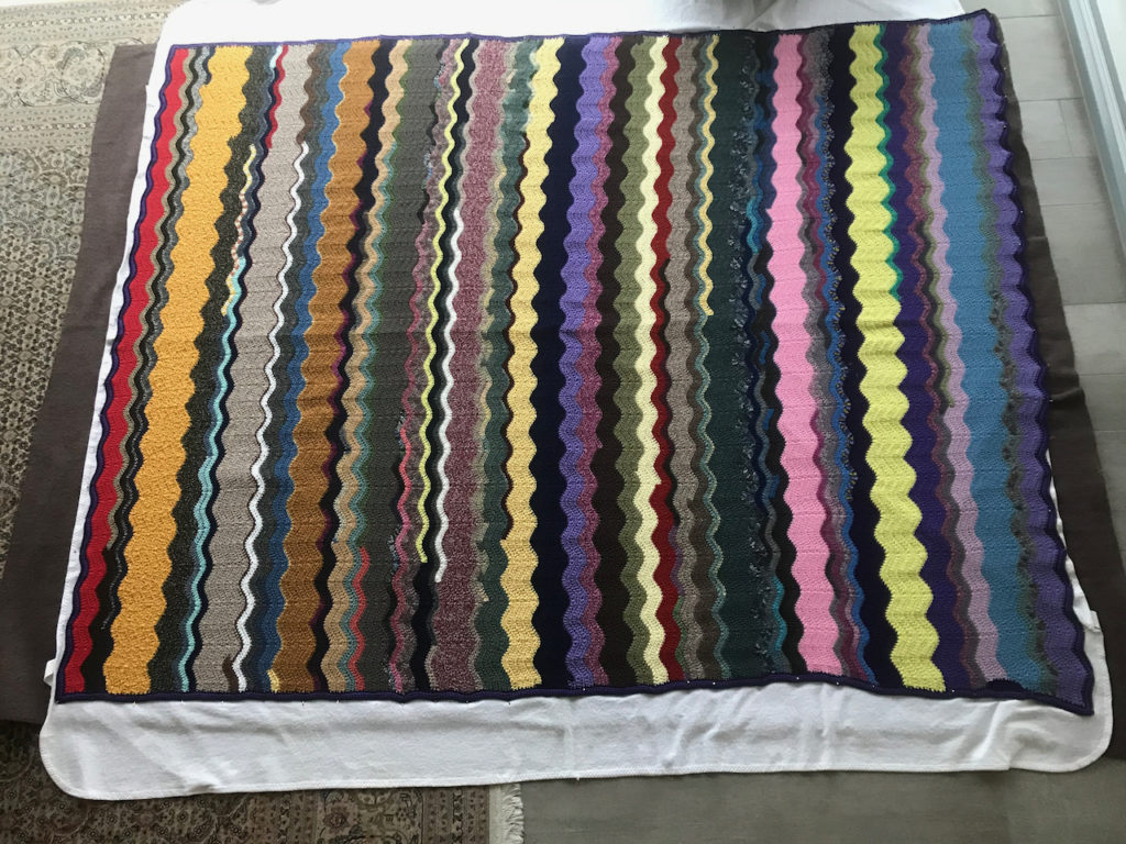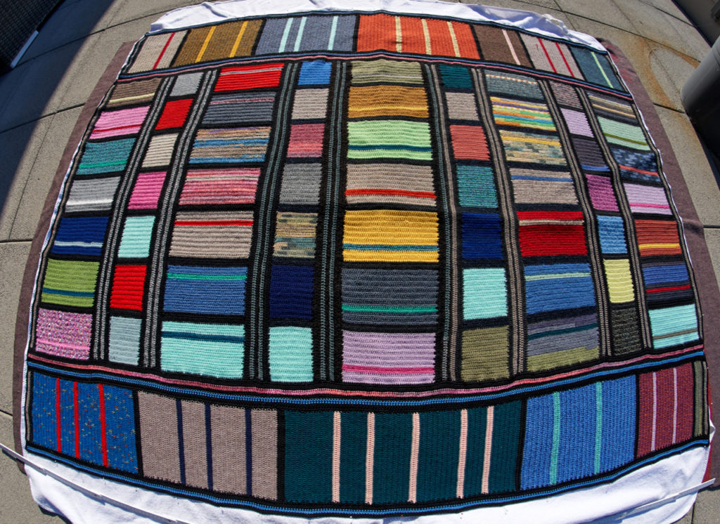 Meine Strickkollegin im Altersheim war schon nach den ersten beiden Streifen begeistert und reservierte sich die Decke. Als ich sie dann fertig ins Altersheim brachte, waren alle sehr angetan.