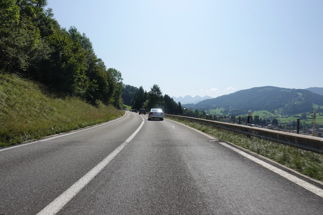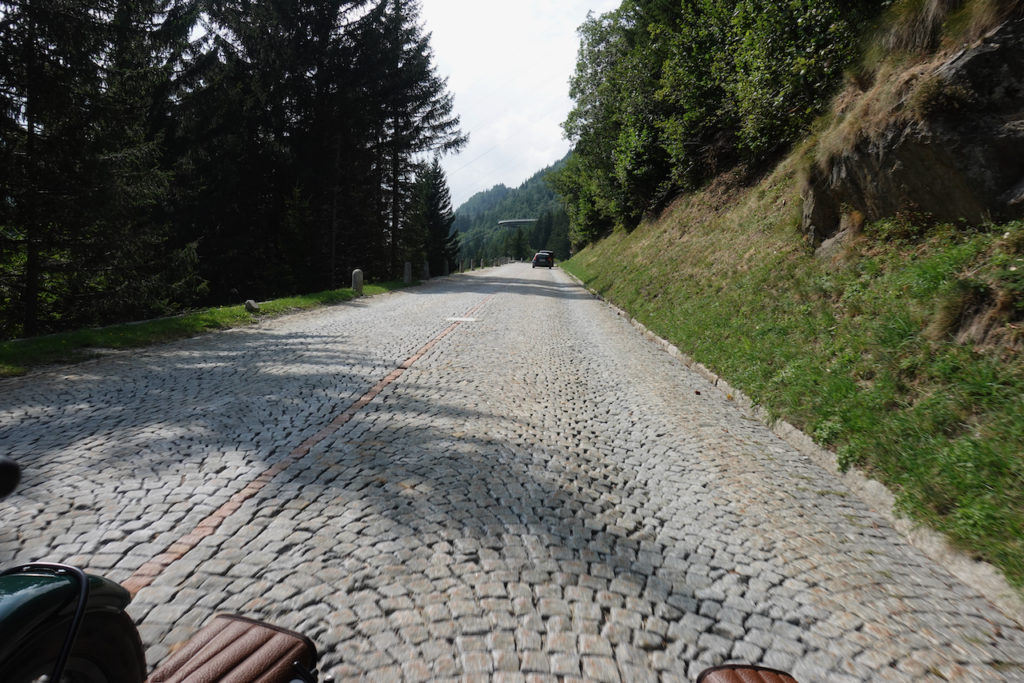 Frisch gestärkt ging es durchs Toggenburg, hinab ins Rheintal und über Chur und Lenzerheide weiter Richtung Julierpass. Da wir unter der Woche unterwegs waren hielt sich auch der Verkehr in Grenzen. Kein Stress, einfach nur «cruisen». Ich will mir gar nicht mehr vorstellen, wie ich während unserer Grand Tour of Switzerland vor drei Jahren hinten auf der Ducati gelitten hatte, wie ist es doch herrlich im Seitenwagen, man kann die Aussicht geniessen, nicht immer denken, liege ich richtig in die Kurve oder bin ich wieder ein Hindernis. Auch knallt man beim Lastwechsel nicht immer wieder mit dem Helm an den Fahrer weil «frau» am gucken ist. Einfach alles total entspannt.