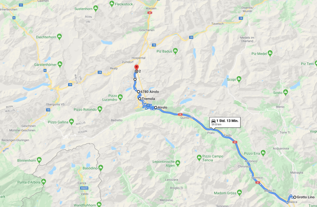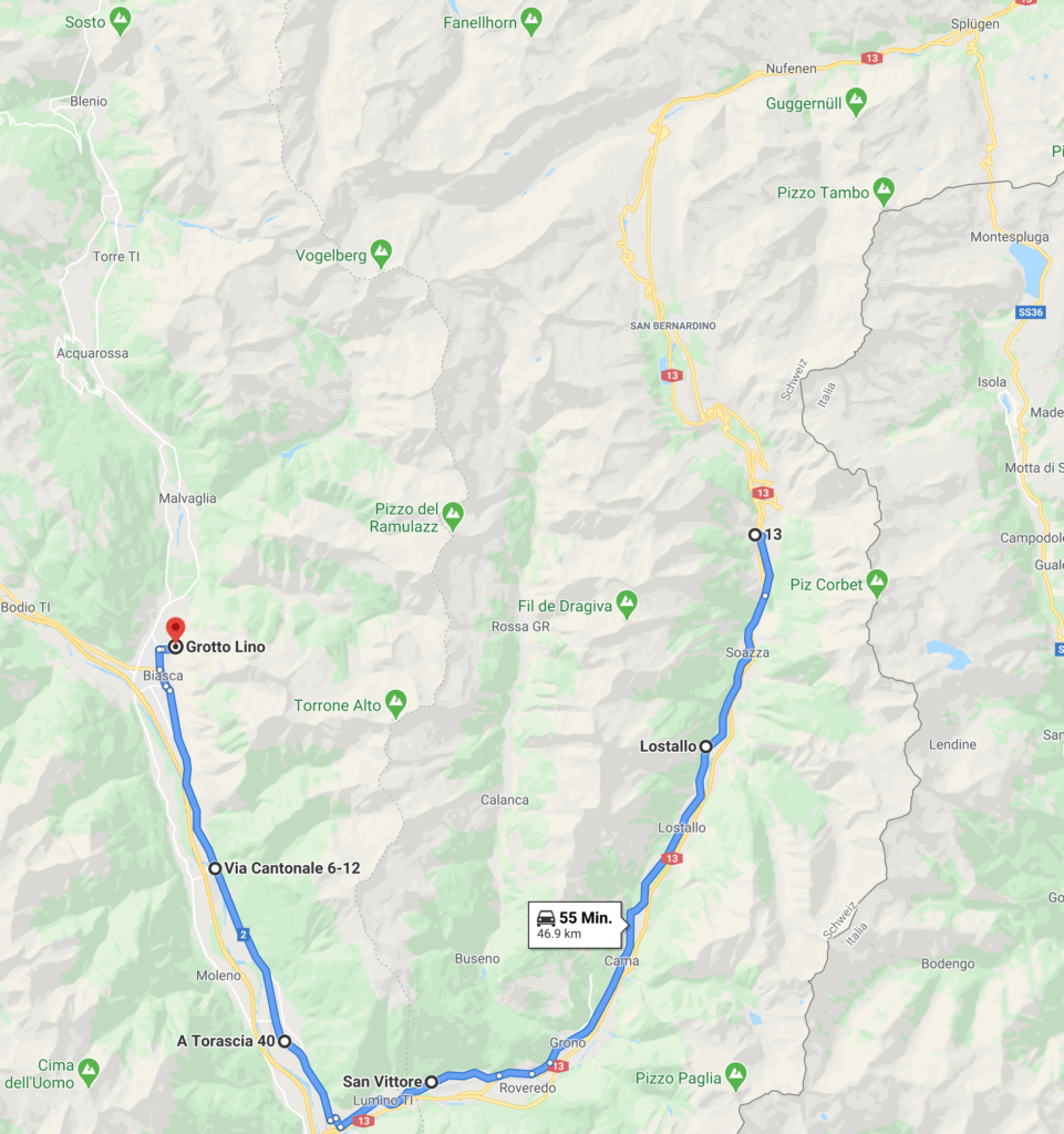 Weiter ging es dann über den San Bernardino Pass, allerdings auf den Nebenstrassen, also nix mit Autostrasse. Chris hatte ganz schön zu tun 😉. Nach dieser intensiven Fahrt – inzwischen im Tessin – machte sich dann aber doch ein leises Hüngerchen bemerkbar und wir beschlossen uns ein Grotto zu suchen. Die kleine Hinweistafel Grotto Lino in Biasca sprach uns an und die Wahl war gar nicht schlecht. Ausser einheimischen Autonummern war nichts zu sehen und das ist ja immer ein gutes Zeichen.