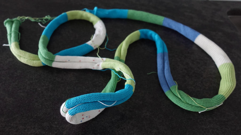 Ich nähte die Bande mit Matratzenstich zusammen und stopfte das Ganze ziemlich satt.